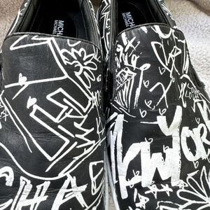 Michael Kors New York “Keaton” Black and White Leather upper white sole 9.5. VGC