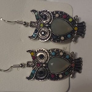 Elegant Silver and Multicolor Dangle Owl Earrings