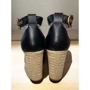 These Coach G4975 Isla Wedge Sandals in Size 11B are the perfect wedge to add to your wardrobe! Featuring black leather uppers with braided raffia wedge heels and a brass C buckle closure, these wedges are an elevated take on a classic design. If you love and appreciate Coach style and quality, you need these in your collection!