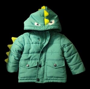 Your little guy will love this hooded dinosaur jacket. The jacket has a zipper with snaps for closure and two big pockets. Perfect for the cold weather.