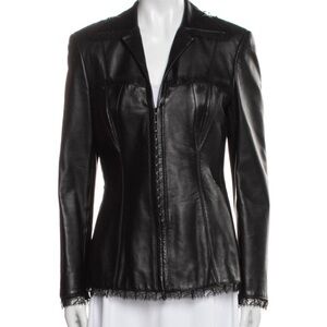 Cinq à Sept Cheyenne Rhinestone-Chain Crepe Black Blazer