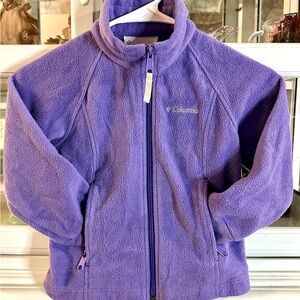 This is a Coach Poppy coin purse or wristlet. It is a vintage accessory from the Coach Poppy collection, featuring a multicolor signature print, purple leather trim, and a key ring. The text on the item includes "COACH EST. 1941", which is a reference to the brand's founding year.