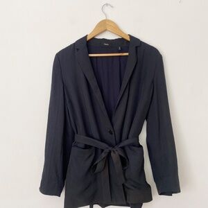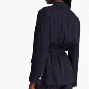 This blazer is easy to wear in a single-breasted silhouette with an elasticized belt for a tempered fit. Accented with notch lapels and welt pockets, this iteration is crafted in Japanese twill that features a washed look and smooth drape. 100% Tri-acetate Size US6- Fits a medium PTP 22', Shoulder to hem 27', Shoulder to shoulder 17' Excellent condition Est.Retail 650$