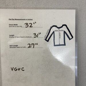 Approximate flat lay measurements: Chest Width (pit to pit): 32", Length: 31", Arm Length: 27" (see measurement photo for reference).