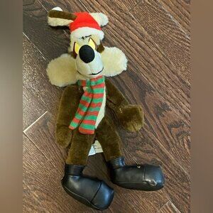 Vintage Looney Tunes Wile E. Coyote Santa Plush 1997 Ace 13 With Santa Hat Green/Red Scarf