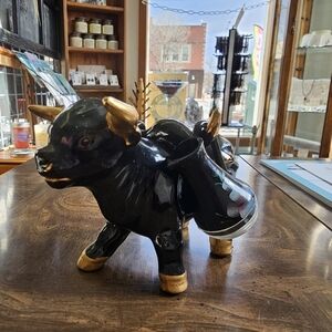This is a vintage Bartlett Collins Proud Rooster Cookie Jar. Overall it is in good condition. The lid has a couple small chips as shown in the photos. The top of the Cookie Jar has some tiny chips from use. It is approximately 9 1/2 inches tall and around 7 inches wide.