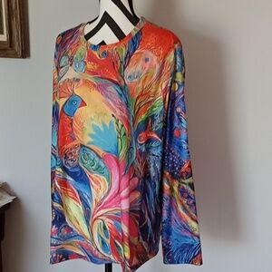 Vibrant and artistic women's top featuring a stunning abstract design. Perfect for adding a splash of color to your wardrobe. New never worn or washed. No tags.