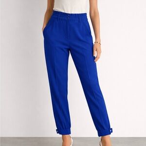 Chic flare pants with button detail. High-waisted for a sleek silhouette. Ideal for versatile styling.