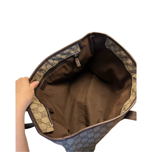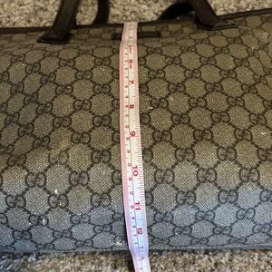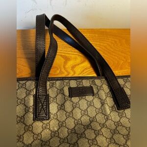 Gucci Brown Coated Canvas Tote. EUC. Minor rubs to the leather trim and a few small rubs on canvas as shown in photos.