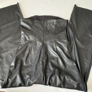 NWT BANANA REBUPLIC Vegan Leather wide leg Jumpsuit Size 4 Black strapless