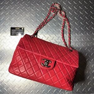 Chanel Lambskin Classic Maxi Flap in Red SHW