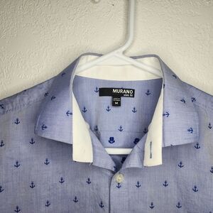 Murano Slim Fit Blue Anchors Button-Up Short Sleeve Casual Men's M Shirt Cotton