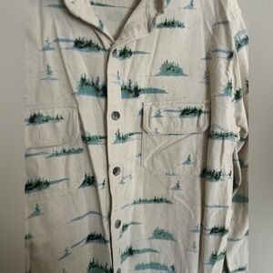 AllSaints Cream and Green Button Down Shirt
