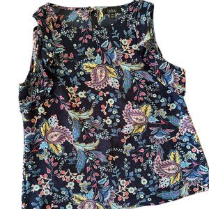 Beautiful Label by Rachel Rachel Roy sleeveless blouse with a colorful floral and paisley print.