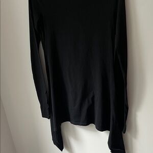 Stylish black longsleeve top with a unique asymmetrical hem. Perfect for adding edge to your look.