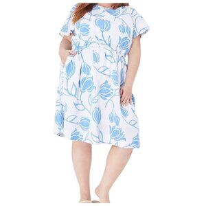 Lane Bryant Floral Midi Linen Summer Dress Size 24 White Blue Tropical Hawaiian