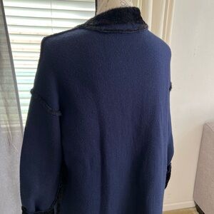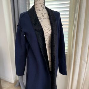 Love Token Navy Blue Open Front Cardigan with cozy fur-like lining.