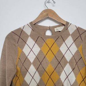La Maille Sezane Merino Wool Jumper Argyle Pattern Sweater in Master, Camel