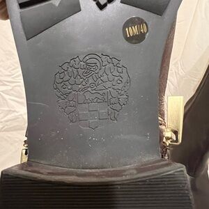 Super cool boots in good condition as shown. At the top, inside the boots is flaking a bit as shown. Exterior looks terrific. Lots of gold hardware.