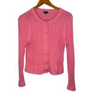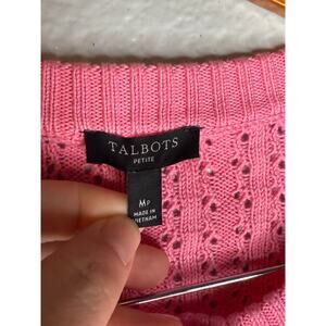 Talbots Pink Textured Crewneck Cardigan Size Medium Petite