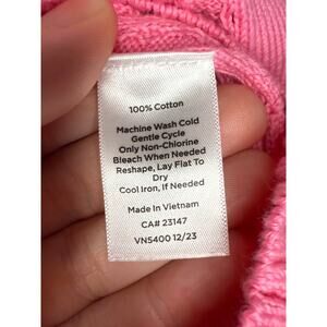 It features a lovely pink textured knit, a classic crewneck, and a comfortable fit in a women's medium petite size.