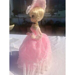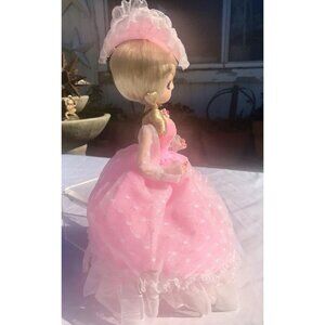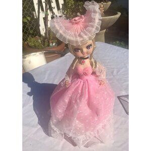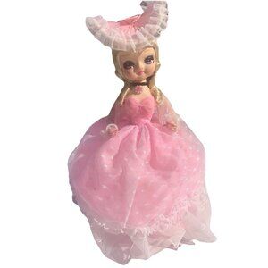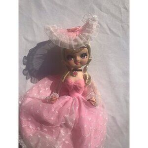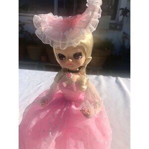 Vtg 70s MCM Bradley Big Eye Doll Southern Belle Hand Painted Nylon Face Pink 12”