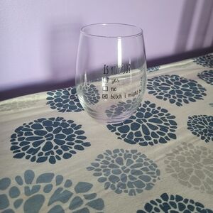 Clear stemless wine glass with humorous text. Perfect for birthdays, parties or gifts.