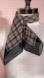 Lovely academic plaid in a colors of camel tan, jet black and an accent of real red in a neat small square neck scarf. Lovely black boarder on a classic plaid in a lightweight easy to wear fabric that is most likely silk. tag has been removed.
