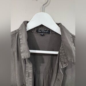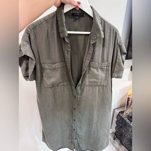 Velvet Heart Button-Up Shirt Dress / Tunic (olive green, Size M)