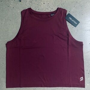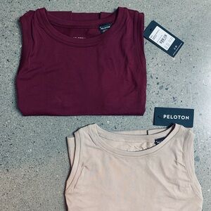 Two Peloton seamless cropped muscle tank tops in maroon and tan. Perfect for active wear. New with tags. Size M/L. 100% Nylon. $20 each or both for $35.