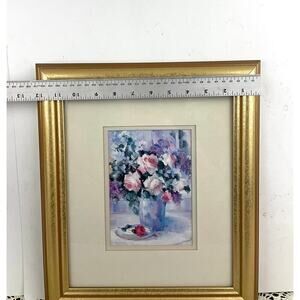VTG Pink Roses In Vase Penny Dermand Print Wall Decor Hanging Framed 12"x15"