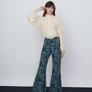 NWT Zara Printed Flared High Waisted Green Paisley Pants