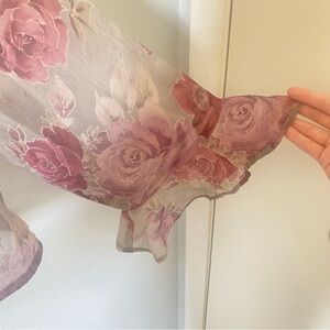Floral, rose, roses, sheer, mesh, transparent, flutter sleeves, ruffles, elegant, chic, feminine, flowy, romantic, 90s, witchy, mystical, lightweight, delicate, breathable, playful, fairy, fairycore, fairy core, fae, nymph, folk, folklore, dark romantic, crinkle, crinkle texture