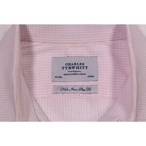 Charles Tyrwhitt White/Pink Check Non-Iron Slim Cotton Dress Shirt (42) 16.5-35