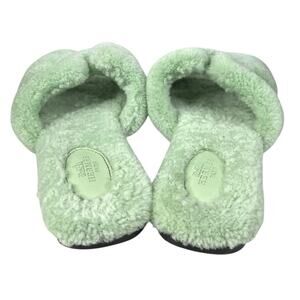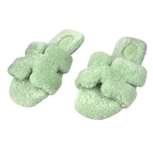 Hermes Women’s Oran Vert D’eau Shearling Sandal Size 39 US 9