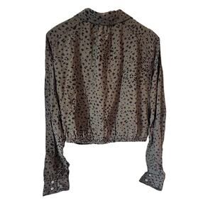 Free People Wishing Well Green Black Cheetah Crop Button Up Blouse Women SMALL