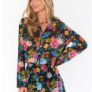 ** CLOSET CLOSING FOR 6+ MONTHS / POSSIBLY INDEFINITELY END OF OCT ** EVERYTHING MUST GO ** (have matching Show Me Your Mumu Skater Mini Skirt in Midnight Botanical Floral - Size S listed separately) Show Me Your Mumu Smith Button Down in Midnight Botanical Floral - Size S - NWT NWT. still in packaging Show Me Your Mumu Smith Button Down Color- Midnight Botanical Floral Size S *Chiffon - 100% Polyester *Button down Anything but a basic button down! This silky top features botanical florals and an elevated collar. Tuck into dark denim with a belt for a sleek look, or leave loose and flowy! Model & Fit Bri is 5'8" and wearing size small ****DISCLAIMER**** -All sales are final. If you have questions about the item, please message me before making a purchase.  -Please note that this item is pre-owned and may have minor signs of wear or flaws. I have done my best to accurately describe any significant issues in the photos and text. Please review all photos carefully as they are part of the description. Before initiating a return or dispute, please contact me so we can work together to resolve any concerns. -I take pictures and videos of the item during packing, showing its quality, packaging, and any identifying labels on the box to prevent return fraud.