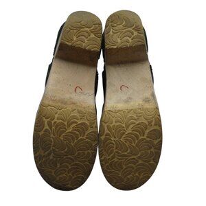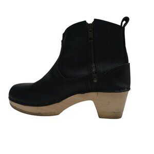 No. 6 Black Leather Wooden Heel Clog Buckle Ankle Boots Womens 38 US 7.5