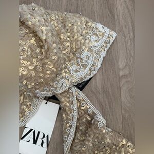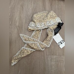 Zara Sequin Lace Pearl sparking Headscarf wrap embroidered festival boho hat