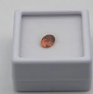 Dark orange faceted spessartine garnet gemstone ready to be placed in jewelry.