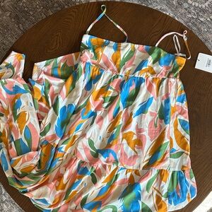 Embrace vibrant style with this colorful leaf print maxi dress. Perfect for adding a pop of color to your wardrobe.