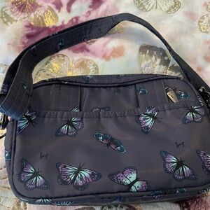 Stylish crossbody bag by Lug. Features a vibrant butterfly pattern. Perfect for everyday use.