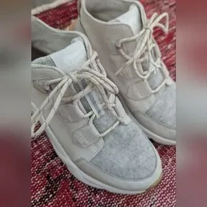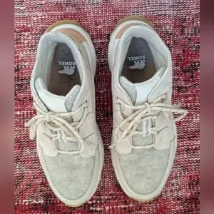 Sorel Women's Kinetic RNEGD Caribou Boot in the color Chalk/Canoe Size 8