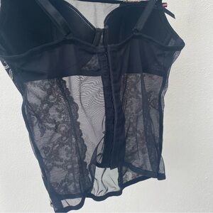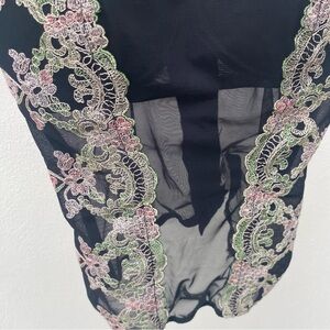 Y2K EURO Floral Embroidered Black Mesh Bustier Top Size 34B