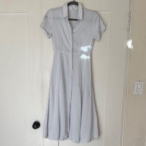Elegant blue Reformation dress with delicate lace trim for a comfortable and stylish night.
