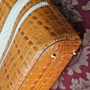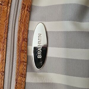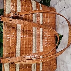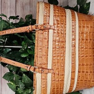 Brahmin Mini Asher Whiskey Stripe Raffia Tan and Cream Leather Tote Bag