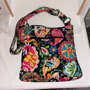 Cute, lightweight Vera Bradley hipster crossbody bag in the Disney Parks Midnight with Mickey pattern. Measures 10.5" wide by 10" tall by 2" deep. Top zip closure, one outside slip pocket, two outside zip pockets. Inside there are 3 slip pockets. Adjustable crossbody strap. Very good used condition from smoke-free home. This has been washed on delicate in cold water and hung out to dry. Bundle with my matching ID pouch!
