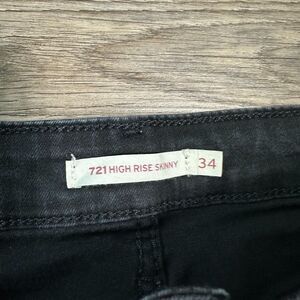Levis 721 High Rise Skinny Jeans Black Womens Distressed 34