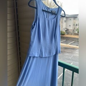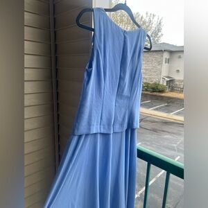 Elegant light blue dress with a flowing silhouette, perfect for weddings, spring events, or church occasions.