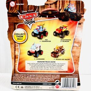 The Disney Pixar Cars Toon Deluxe I-Screamer #25 Monster Truck Mater Series is a diecast toy vehicle featuring a unique monster truck Mater design from the Disney Pixar Cars franchise. This collectible toy is part of the Disney Pixar Cars Toon Deluxe series, which appeals to a broad age range of fans, including boys and girls aged 3 years and up. With its multi-color design and unopened box, this officially licensed product is perfect for young fans of the popular animated movies. Made in China, this toy showcases the beloved characters from the Disney Pixar Cars series in a fun and imaginative way.